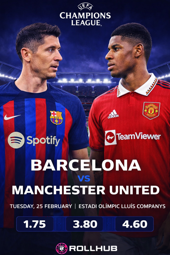 The UEFA Champions League knockout phase delivers a high-profile European fixture as Barcelona hosts Manchester United in a matchup defined by contrasting tactical identities and historical weight. With qualification momentum and knockout positioning at stake, this fixture demands calculated risk management and disciplined execution, while generating strong betting interest on rollhub.com, where Champions League markets are most active during the competition’s decisive stages.
