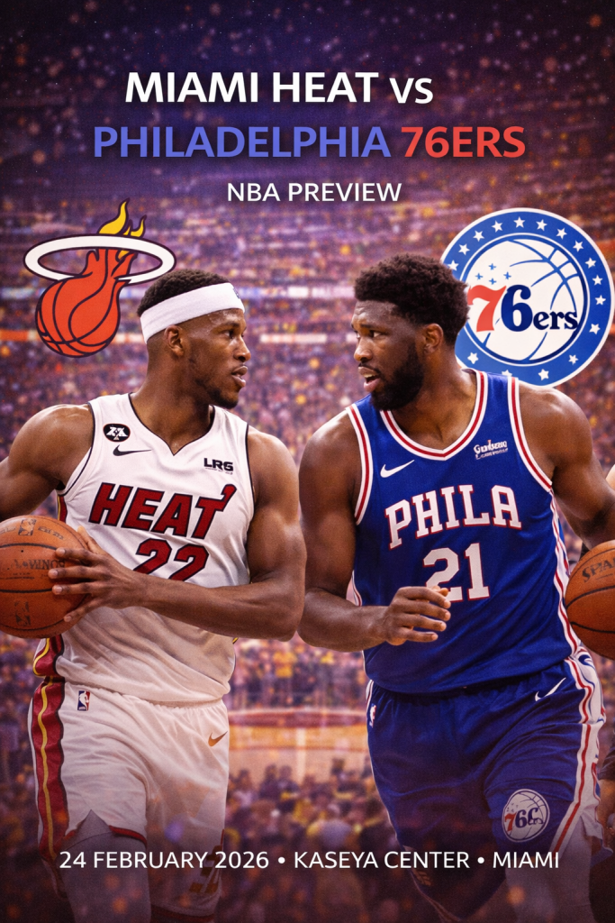 Date: Tuesday, 24 February 2026Tip off: 19 30 ETVenue: Kaseya Center A high-stakes Eastern Conference matchup takes place in South Florida as the Miami Heat host the Philadelphia 76ers. This contest brings together two teams built on playoff basketball principles, combining Miami discipline and defensive control with Philadelphia’s star-driven offense and interior strength. Matchups of […]