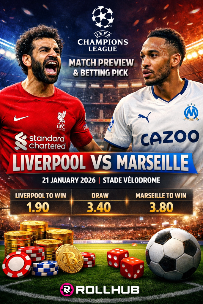 The journey toward the knockout rounds of the 2025-26 UEFA Champions League resumes this Wednesday, with Liverpool traveling to France to face Marseille. Both teams need a result to strengthen their positions in the top-eight standings (top seeds go direct to the Round of 16). With major markets active on rollhub.com, this match is attracting attention from both tactical analysts and crypto sports bettors.